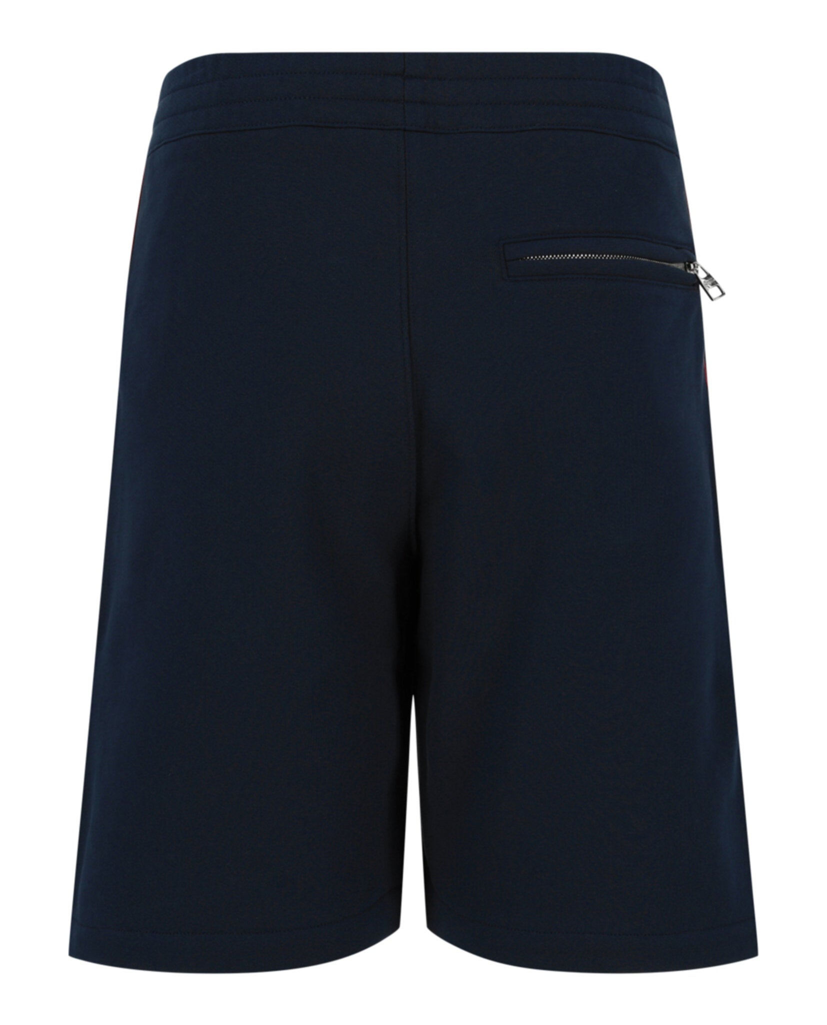 - Signature logo tape at the side; Two side slit pockets and one zip pocket at back; Silver-tone hardware
