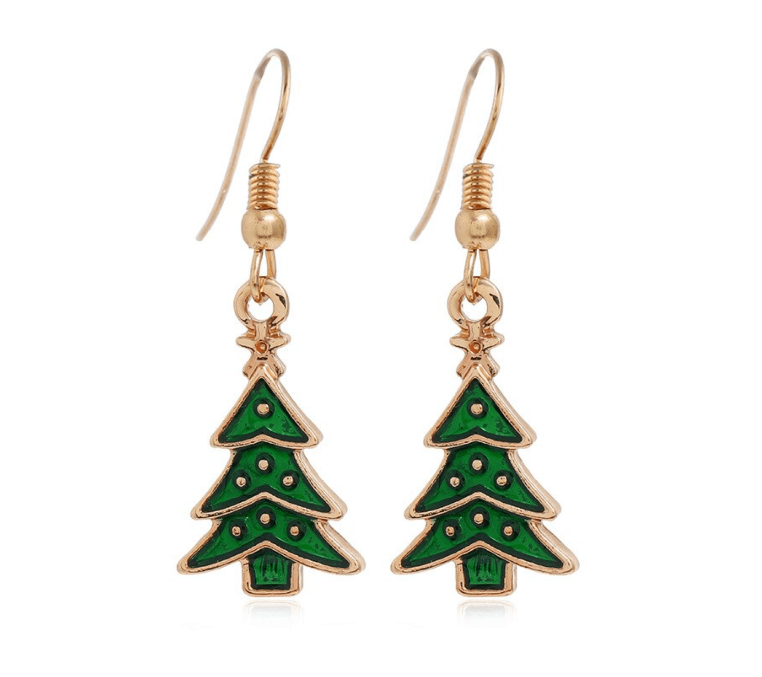 Don’t AsK Goldtone Green Dainty Christmas Tree Drop Earrings ?C Festive Holiday Jewellery for Women