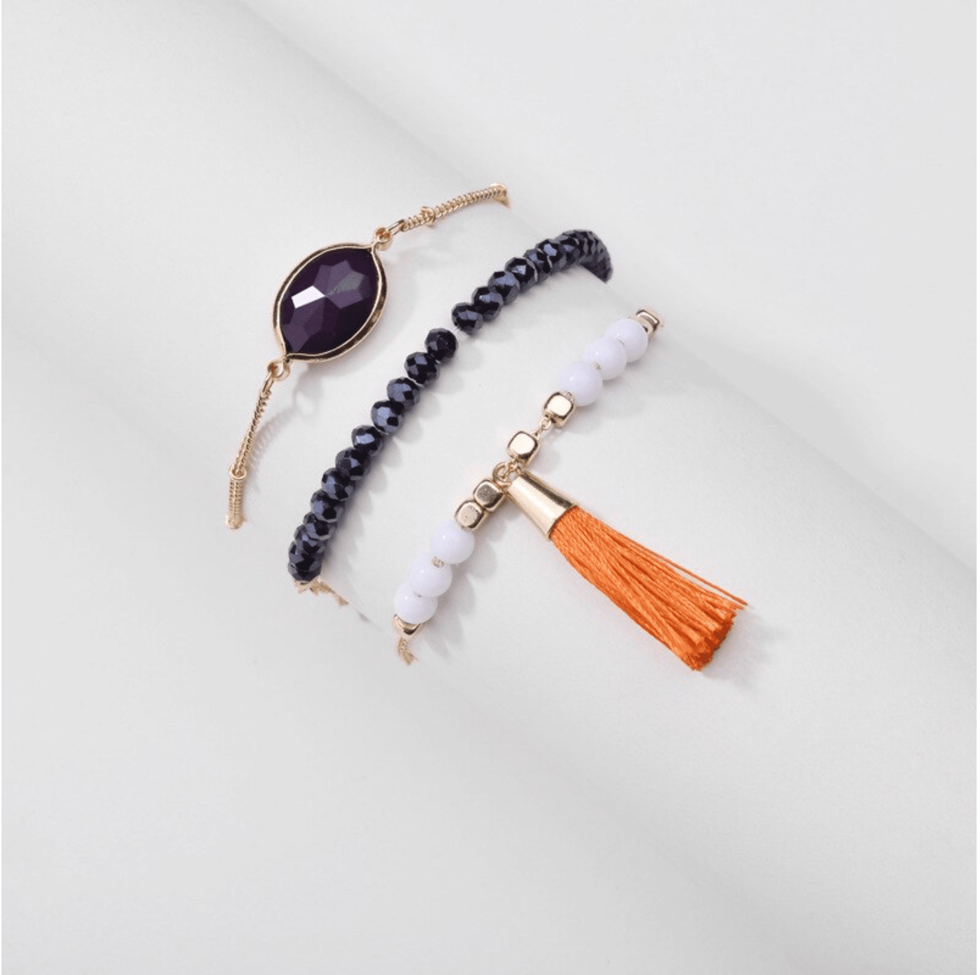 Don’t AsK Set of 3 Beaded Bracelets with Orange Tassel ?C Stacking Stretch Bracelets