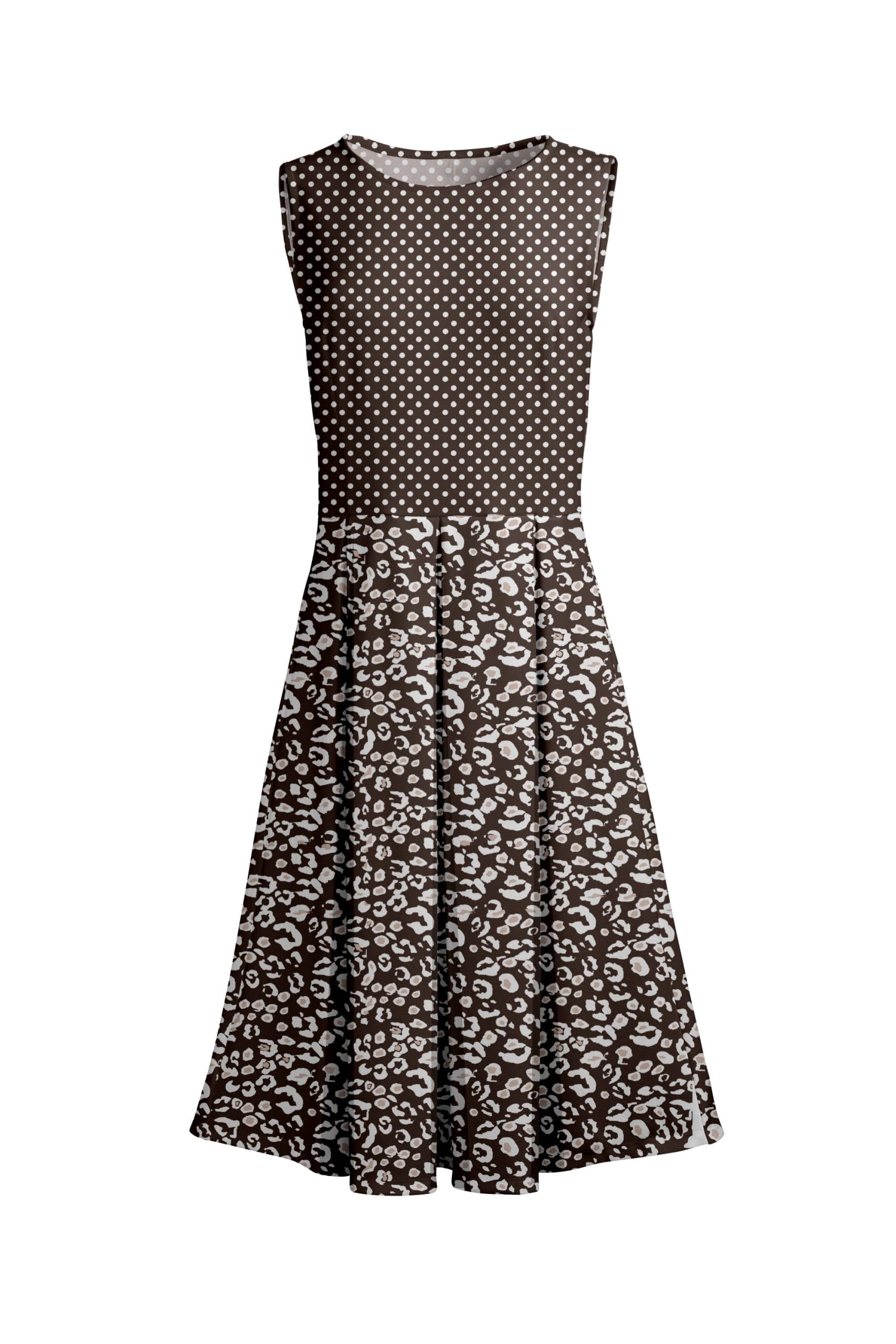Lily by Firmiana Women’s Sleeveless Dress with Pleated Skirt Black & White Dot Leo