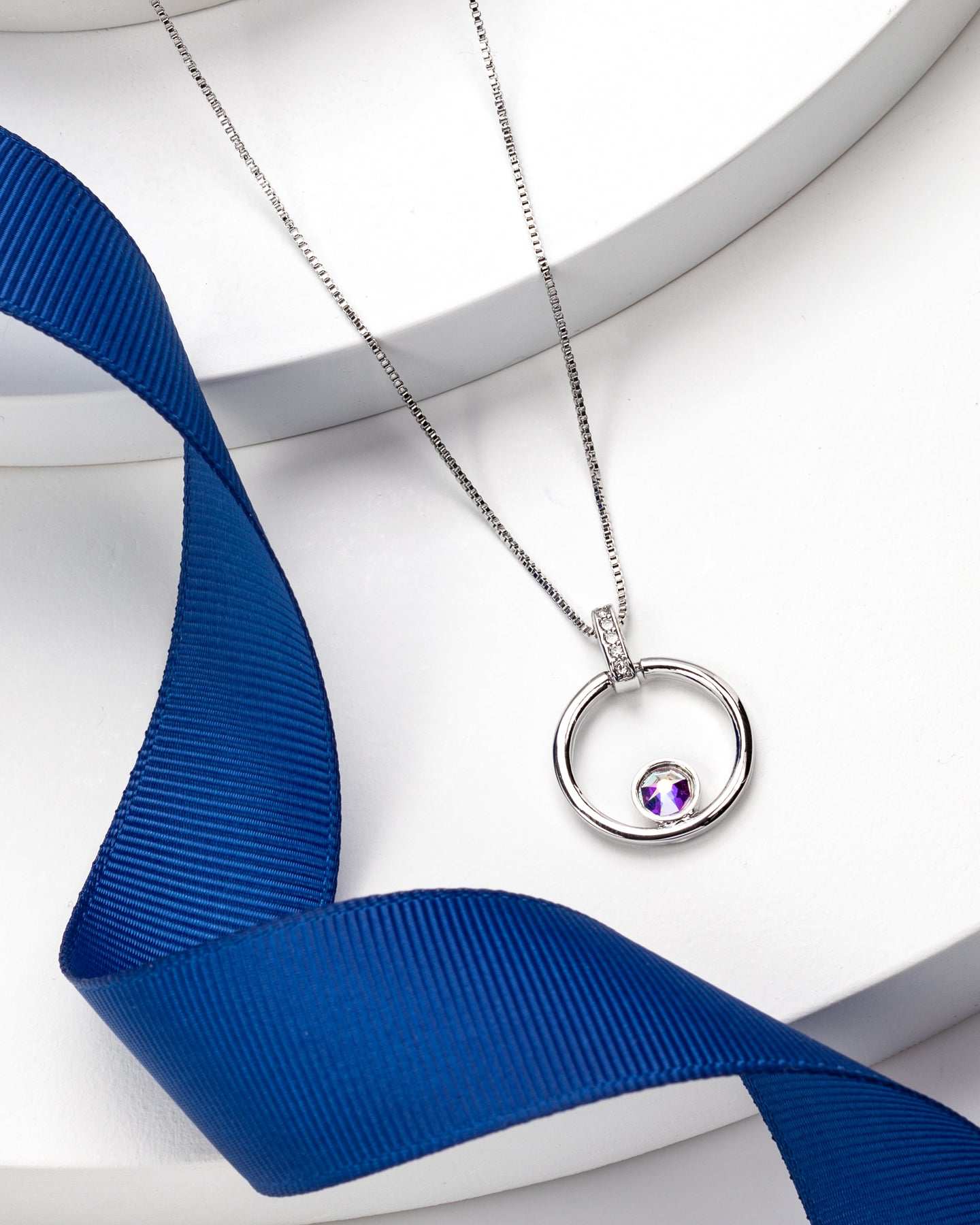 Silver Aurora Borealis Swarovski Crystal Necklace ?C Open Circle Dainty Crystal Pendant Necklace