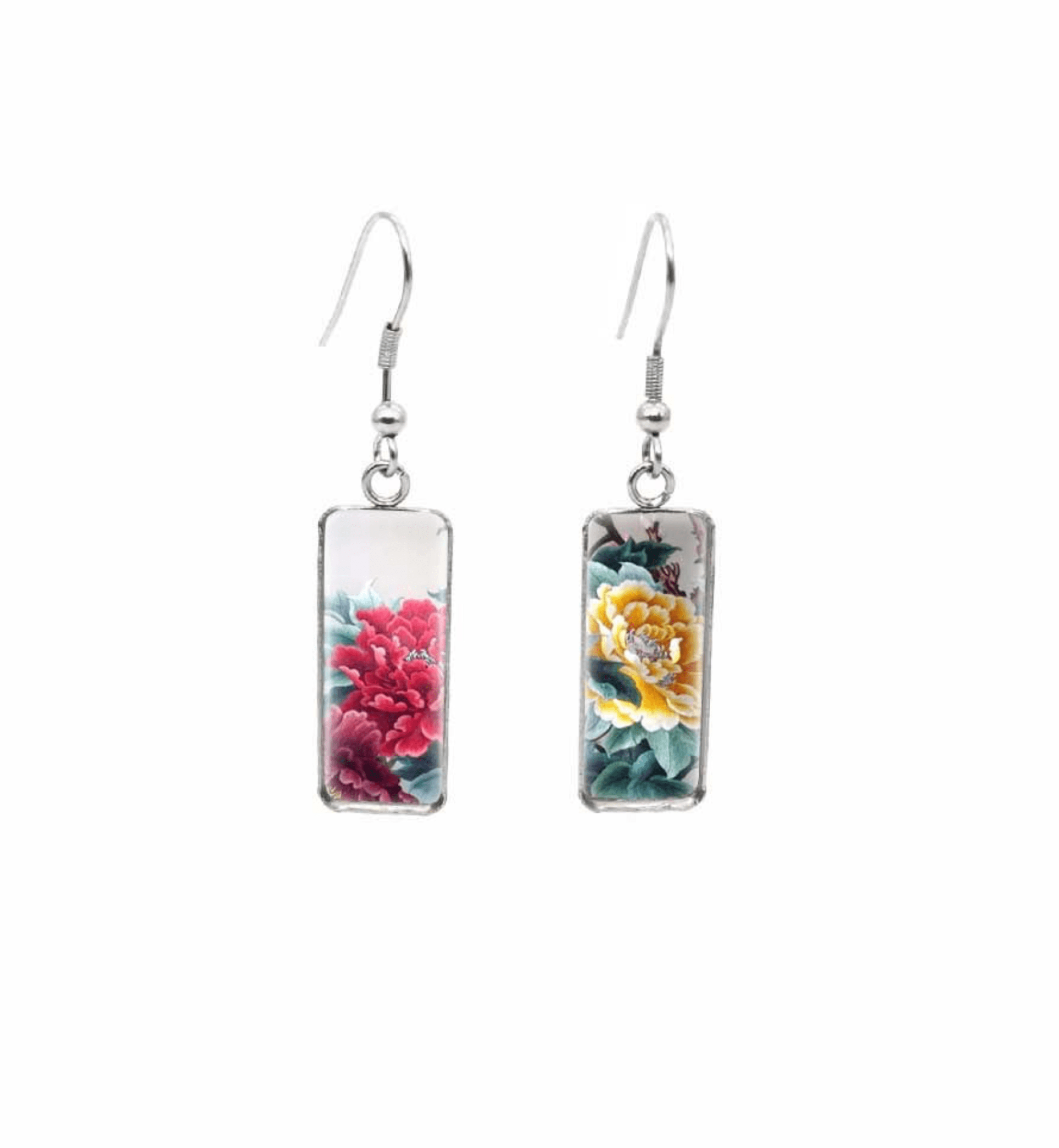 Don’t AsK Rectangular Art-Print Drop Earrings ?C Pink & Yellow Flowers ?C Lightweight Dangle Earrings for Women