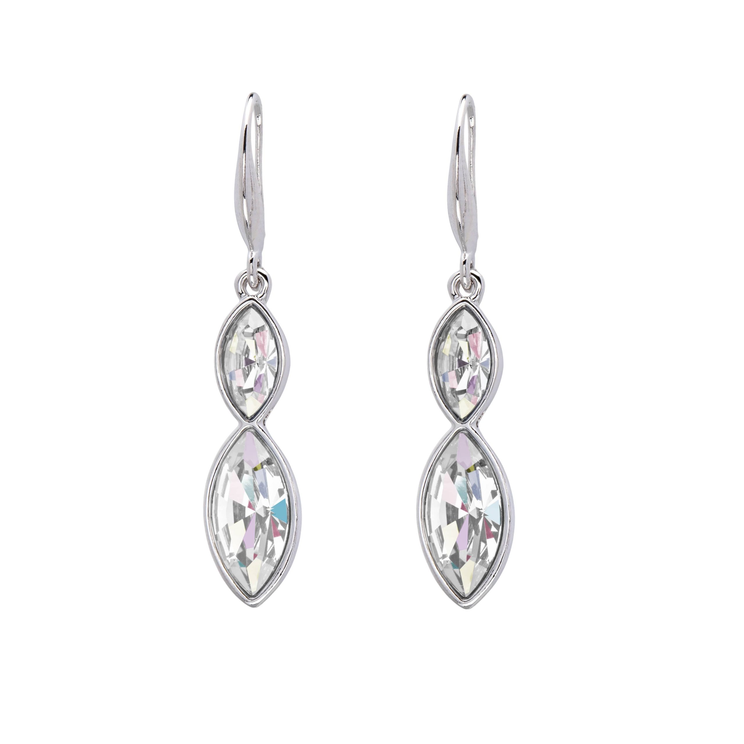 Silver Clear Swarovski Crystal Earrings ?C Dual Crystal Marquis Drop Earrings