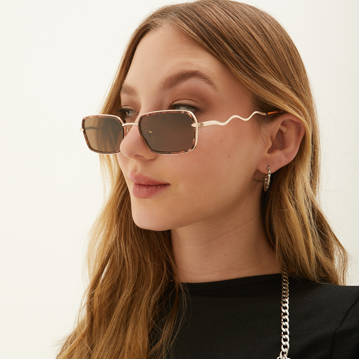 - Unique curvy metal temples